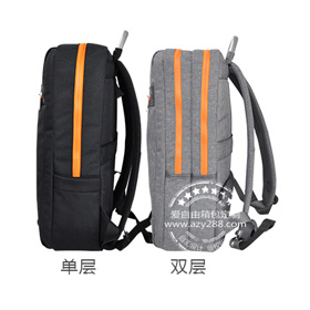 这款商务差旅背包由爱自由箱包自主设计研发,属于2015年秋冬新款。整个背包以轻商务、轻时尚为设计概念,包身采用时尚撞色设计,比较中性化,适合每一位商务人士使用。包身口袋布局独特,设有前幅拉链存储袋及斜纹存储袋,配上橙色拉链,形成撞色的效果。同时,主袋内设有分格存储格,方便各种小件物品的放置,易放易取,让商务人士的工作更轻松。