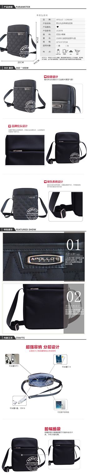 深圳单肩包定做厂家找爱自由箱包厂家。爱自由箱包厂家该款单肩包为商务人士设计,小蜂巢设计让商务多些变化,经典的纯色带动整体的庄重型,使特色的他不失严谨,而精致的外观,无暇的车缝让使用更安全有质,存储量则以分格类设计,让存储空间更多更细致。